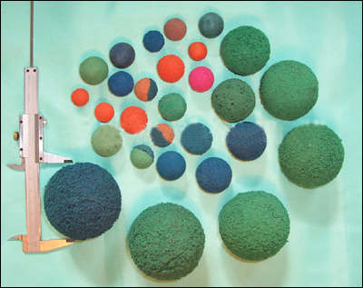 一、膠球清洗 -- 凝汽器膠球清洗裝置圖樣   二、剝皮膠球--脫皮膠球--橡膠球--普通膠球--金鋼砂膠球--半金鋼砂膠球--海棉膠球 標(biāo)準(zhǔn)剝皮膠球--脫皮膠球--橡膠球--普通膠球--金鋼砂膠球--半金鋼砂膠球--海棉膠球特別適用于各種汽輪機(jī)凝汽器冷卻管[銅管、不銹鋼管]的清洗,標(biāo)準(zhǔn)剝皮膠球--脫皮膠球--橡膠球--普通膠球--金鋼砂膠球--半金鋼砂膠球--海棉膠球也是各火力發(fā)電廠冷油器、汽水換熱器、水-汽換熱器、高加加熱器的一種常用膠球。膠球的制造主要由天然橡膠加發(fā)泡劑和特殊添加劑制造而成。標(biāo)準(zhǔn)剝皮膠球--脫皮膠球--橡膠球--普通膠球--金鋼砂膠球--半金鋼砂膠球--海棉膠球可以適用于各種膠球清洗裝置的不同水質(zhì)。剝皮膠球--脫皮膠球--橡膠球--普通膠球--金鋼砂膠球--半金鋼砂膠球--海棉膠球在膠球輸送泵的作用下有效去汽輪機(jī)凝汽器--冷油器--汽水換熱器--水汽換熱器--高加加熱器換熱管[銅管、不銹鋼管]除生物污垢、高粘性生物污垢。使設(shè)備始終處于安全穩(wěn)定狀態(tài)。 三、剝皮膠球--脫皮膠球--橡膠球--普通膠球--金鋼砂膠球--半金鋼砂膠球--海棉膠球規(guī)格 剝皮膠球--脫皮膠球--橡膠球--普通膠球--金鋼砂膠球--半金鋼砂膠球--海棉膠球的規(guī)格直徑Φ9-Φ54mm[詳情查閱使用說明書]。