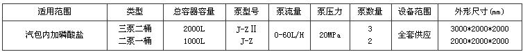 本裝置適用于火力發(fā)電廠300MW及以下機(jī)組氣包內(nèi)加磷酸鹽處理,為二臺(tái)爐用一套設(shè)備,共設(shè)三臺(tái)加藥泵,其中一臺(tái)為備用,為單元制運(yùn)動(dòng)。